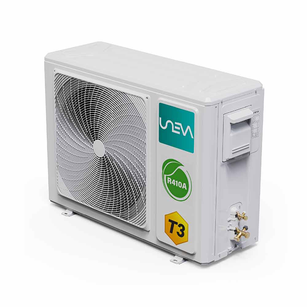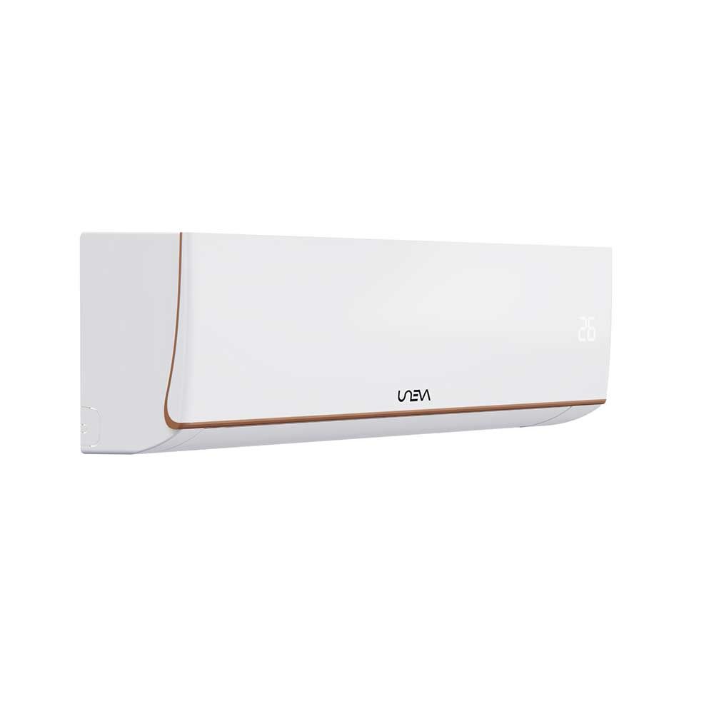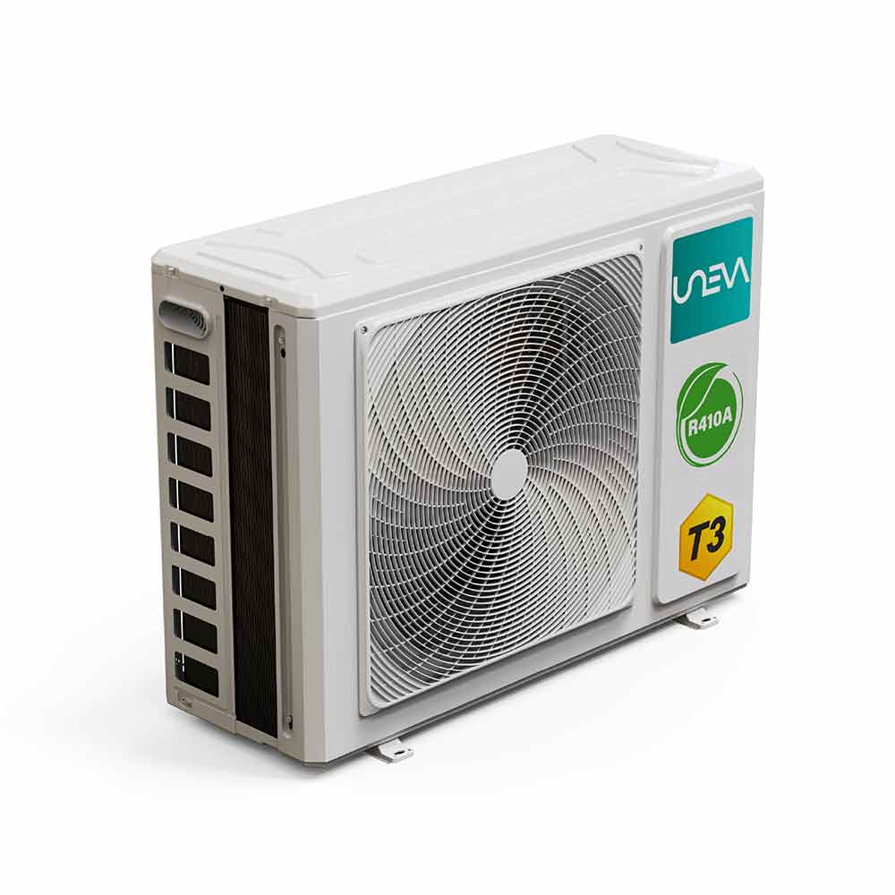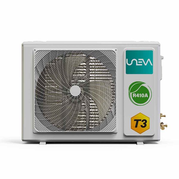 کولر گازی اسپلیت مدل UN-GHS12 T3 PRO از سری T3 PRO اسپلیتهای UNEVA است که برای ارائه حداکثر راحتی و کارایی در محیطهای مختلف طراحی شده است. UNEVA با بیش از ۱۰ سال سابقه درخشان در صنعت، پیشرو در بازار تهویه مطبوع است و به دلیل اعتبار و دوام محصولات خود در صدر بازار قرار دارد. ما مفتخریم که محصولات جدید، پیشرفته و با تکنولوژی بالا را ارائه دهیم، همانطور که شما عادت کردهاید. UNEVA با افزودن لمسی از لوکس بودن خانگی، مرزها را جابجا کرده و نگاه شما را به لوازم خانگی تغییر خواهد داد. UNEVA جدیدترین تکنولوژی را از نقاط مختلف جهان به اتاق نشیمن، آشپزخانه، فروشگاه و نمایشگاه شما میآورد. با UNEVA، شما هرگز نگران راحتی و سلامت خود نخواهید بود. UNEVA تکنولوژی بریتانیایی پیشرفته را با عملکردی برجسته به بازار ارائه میدهد و با تجربه راحتی تهویه مطبوع قدرتمند ما، هرگز متوجه آب و هوای بیرون نخواهید شد.