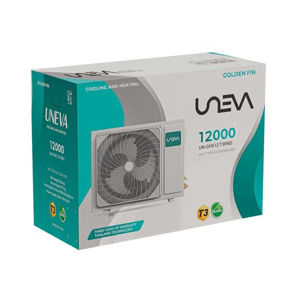 کولر گازی اسپلیت UNEVA مدل UN-GHS12 T3 PRO، از سری T3 PRO محصولات UNEVA، با عملکرد دوگانه سرمایش و گرمایش طراحی شده تا آسایش بیوقفهای را در تمام فصول سال برای شما به ارمغان آورد. UNEVA با بیش از ۱۰ سال سابقه درخشان در صنعت تهویه مطبوع، پیشرو در بازار است و با افتخار، جدیدترین تکنولوژیهای پیشرفته بریتانیایی را برای آسایش و سلامت شما به ارمغان میآورد. این کولر گازی تضمین میکند که شما هرگز متوجه آب و هوای بیرون نشوید و راحتی و سلامتی شما در خانه، آشپزخانه، فروشگاه یا نمایشگاهتان تضمین شود.