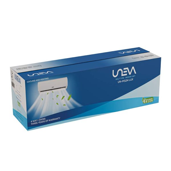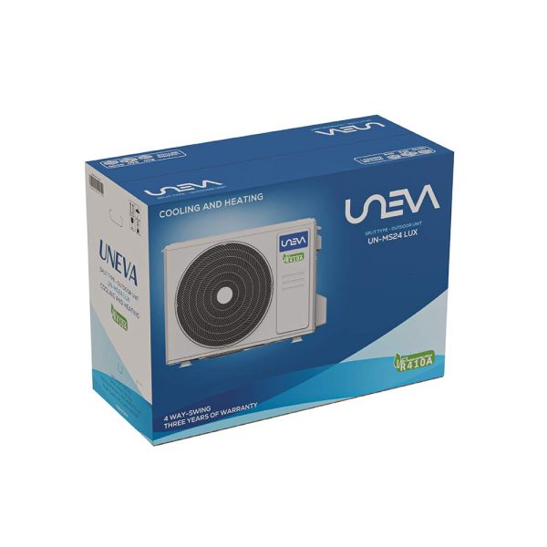 کولر گازی اسپلیت UNEVA مدل UN-MS24 LUX، از سری LUX محصولات UNEVA، با عملکرد دوگانه سرمایش و گرمایش طراحی شده تا آسایش بیوقفهای را در تمام فصول سال برای شما به ارمغان آورد. UNEVA با بیش از ۱۰ سال سابقه درخشان در صنعت تهویه مطبوع، پیشرو در بازار است و با افتخار، جدیدترین تکنولوژیهای پیشرفته بریتانیایی را برای آسایش و سلامت شما به ارمغان میآورد. این کولر گازی تضمین میکند که شما هرگز متوجه آب و هوای بیرون نشوید و راحتی و سلامتی شما در خانه، آشپزخانه، فروشگاه یا نمایشگاهتان تضمین شود.
