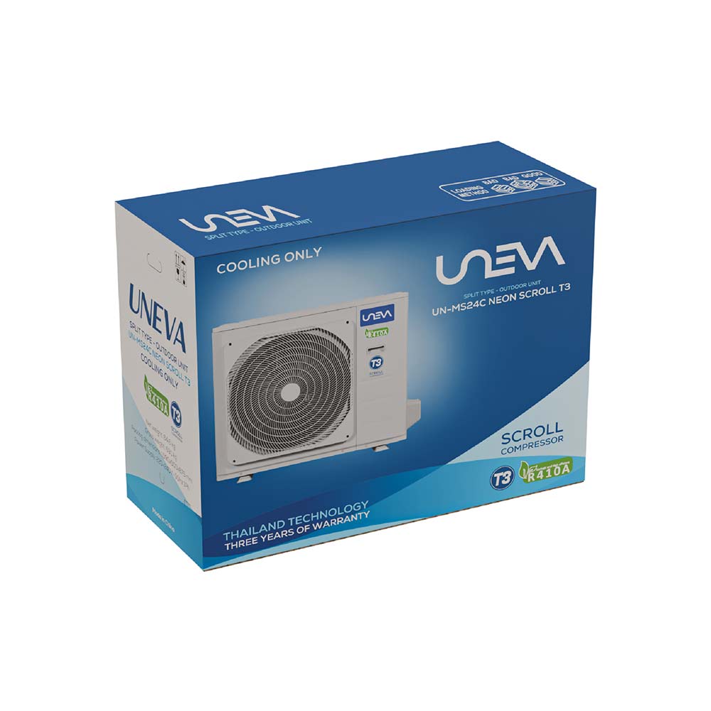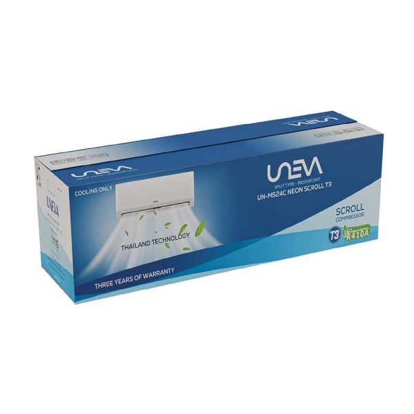 کولر گازی اسپلیت UNEVA مدل UN-MS24C NEON SCROLL T3، از سری NEON T3 COOLING ONLY SCROLL محصولات UNEVA، با عملکرد سرمایش تنها طراحی شده تا آسایش بیوقفهای را در فصول گرم سال برای شما به ارمغان آورد. UNEVA با بیش از ۱۰ سال سابقه درخشان در صنعت تهویه مطبوع، پیشرو در بازار است و با افتخار، جدیدترین تکنولوژیهای پیشرفته بریتانیایی را برای آسایش و سلامت شما به ارمغان میآورد. این کولر گازی تضمین میکند که شما هرگز متوجه آب و هوای بیرون نشوید و راحتی و سلامتی شما در خانه، آشپزخانه، فروشگاه یا نمایشگاهتان تضمین شود.